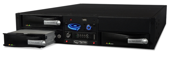 The High-Rely NetSwap 200 has one internal and one removable disk of equal size to allow dual copies of backup data. Netswaps are purpose-built backup appliances based on Linux that provide a high performance low cost alternative to consumer grade network attached storage. Targeted for entry level backup storage.